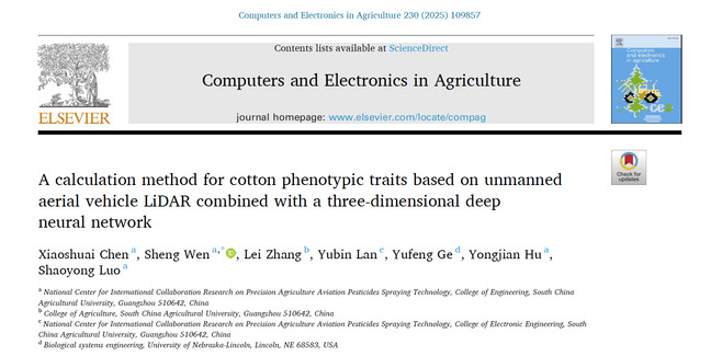 近期,乐竞在线注册工程学院硕士研究生陈小帅以第一作者身份在国际知名期刊Computers and Electronics in Agriculture(中科院一区Top期刊,影响因子8.4)发表题为“A calculation method for cotton phenotypic traits based on unmanned aerial vehicle LiDAR combined with a three-dimensional deep neural network”的研究论文。论文提出一种基于无人机激光雷达结合三维深度神经网络的棉花高通量表型获取方法,为无人机在大田棉花的高通量表型信息获取领域提供了新的研究思路和方法。
