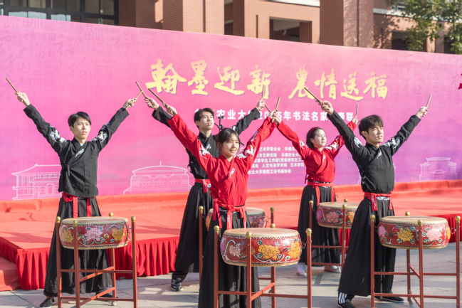 本次活动以“翰墨迎新 农情送福”为主题,是华农2025年首场大型校园文化活动。活动现场,10多位知名书法家与华农教工诗书画协会、学生书画社的会员代表共同挥毫,为即将到来的乙巳蛇年送上祝福。