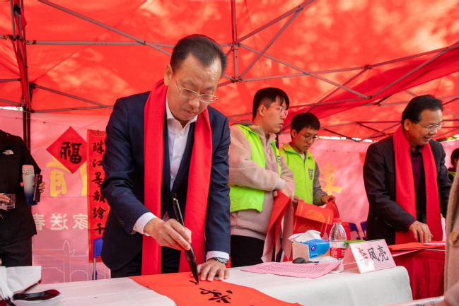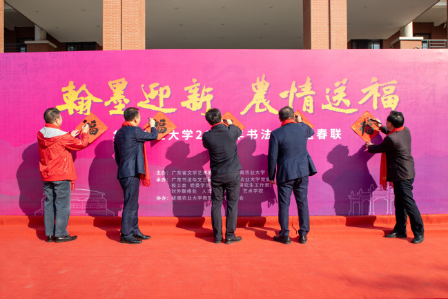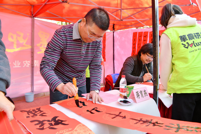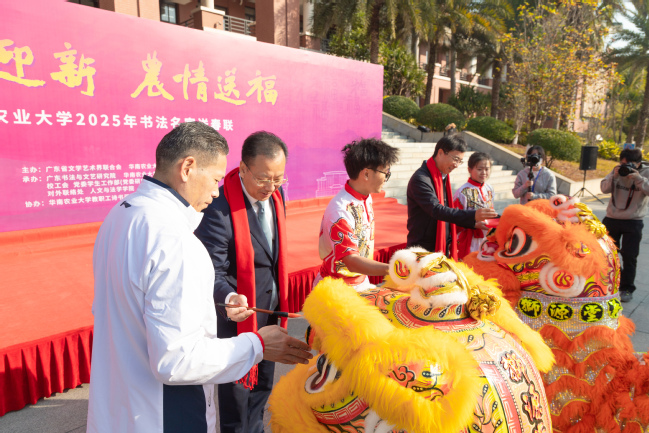 李凤亮表示,文化是一所大学的灵魂,2024年,学校以迎接办学115周年为契机,大力推进校园文化建设,成功举办“大美华农”文艺名家进校园等系列活动,推动以美育人、以文化人。“迎新春·送春联”是华农校园文化品牌活动,已经连续举办7年,不仅传承了优秀的文化传统,更增强了师生之间的情感交流,营造了浓厚的校园文化氛围,希望师生学习书法名家的技艺与精神,感受中华文化特别是书法艺术之美,增强文化自信、激发蓬勃生机。