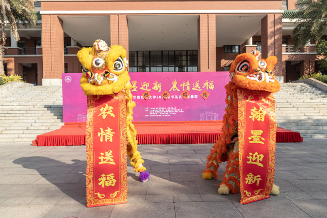 “祥蛇书翰墨 雅集贺新春”“大美华农呈新貌 一流学府育栋梁”“凝心‘双一流’炽盛 聚力‘百千万’振兴”……广场上,一副副饱含对新春、对华农祝福的春联与一个个神韵生动的大红“福”字一起,带着墨香在阳光下晾晒。1月6日上午,乐竞在线注册与广东省文联联合主办、广东书法与文艺研究院参与承办的书法名家送春联活动在华农行政楼广场举行。