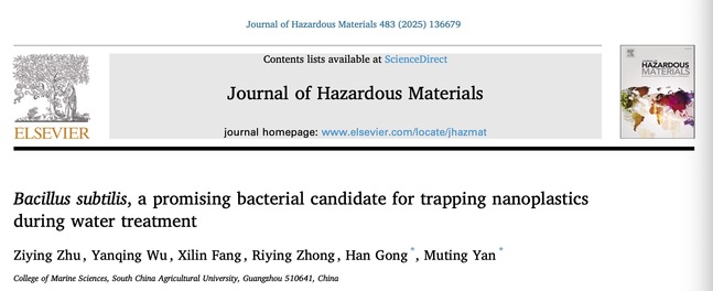 严慕婷副教授团队自2021年起在微/纳米塑料与细菌间相互作用相关研究领域已发表科研论文共19篇,其中包括中科院一区12篇。已初步建立了微/纳米塑料与细菌间互作体系,为微/纳米塑料在水产养殖中的风险评估及环境消减策略提供理论依据。上述研究得到国家自然科学基金面上项目(42377363、42177253)和广东省自然科学基金面上项目(2024A1515011401、2022A1515010197)、广东省科技专项资金(“大专项+任务清单”)项目(210708146901717)等项目的资助。