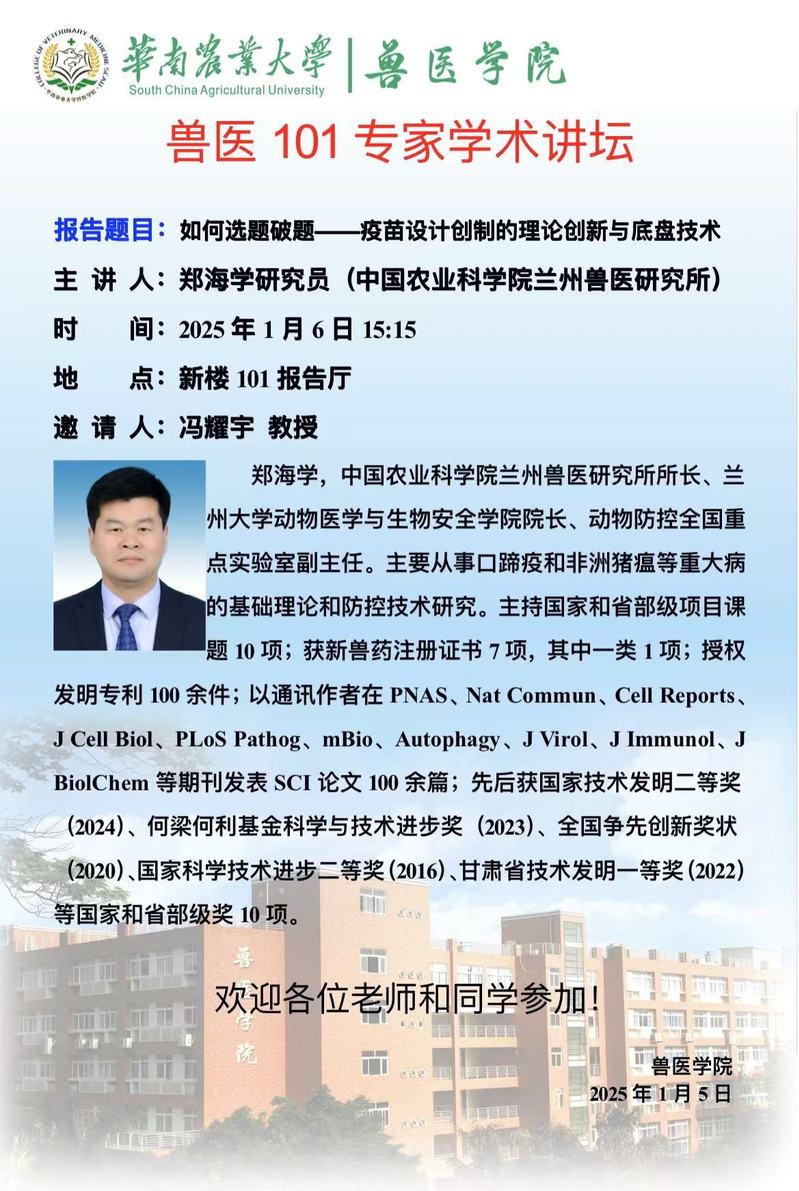 兽医101著名专家学术讲坛:如何选题破题——疫苗设计创制的理论创新与底盘技术
