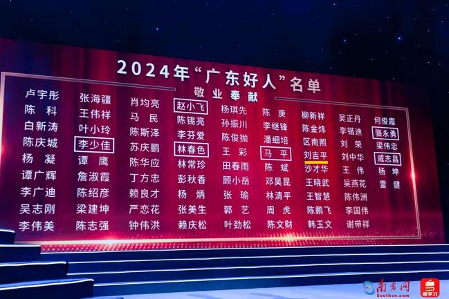 据悉,“广东好人”推选活动旨在培育和践行社会主义核心价值观,选树道德典型,弘扬传统美德,推动全社会形成崇德向善、见贤思齐的文明风尚。经各地各部门推荐、集中评审、网上公示,2024年共有各行各业具有典型示范引领作用的196名同志获评助人为乐、见义勇为、诚实守信、敬业奉献、孝老爱亲五大类别的“广东好人”称号。