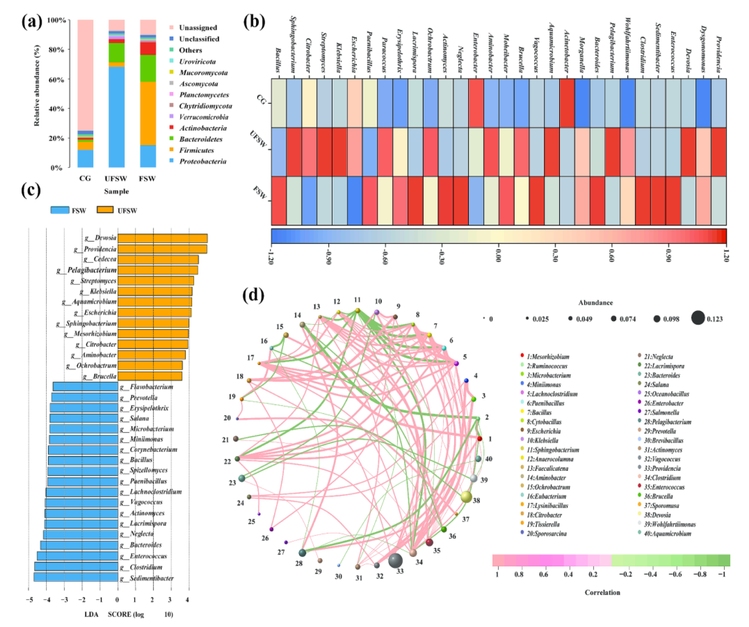 在全球面临有机废弃物处理压力的大背景下,蚕桑废弃物的资源化成为产业发展的难题,传统弃置处理的方式弊端较多。黑水虻幼虫(BSFL)能够高效生物转化有机废弃物,其发展潜力备受关注。研究团队运用微生物发酵技术,对蚕桑废弃物进行发酵前处理,并以此饲养黑水虻幼虫。与未发酵组相比,在特定发酵组中幼虫半数预蛹时体重显著提高,发育时间缩短4天,存活率提高18%,废弃物的生物转化率得到提升。深入探究肠道微生物群落发现,Sedimentibacter、Clostridium、Enterococcus等有益共生菌属丰度显著增加,而Providencia、Klebsiella等有害菌属则明显减少。转录组分析表明,发酵组后黑水虻肠道中大量上调基因与氨基酸、碳水化合物、碳代谢及Toll和Imd信号通路等紧密关联,表明微生物发酵可有效调控黑水虻基因表达,增强其代谢与免疫能力,实现对有机废弃物的高效利用与营养吸收。这些结果为有机废弃物可持续管理开辟新方向,有望推动生态农业的健康发展,实现废弃物的资源化利用。以上成果论文第一作者为Fareed Uddin Memon博士后,田铃教授为论文通讯作者。
