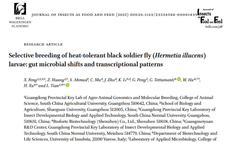 近日,动物科学学院田铃团队在环境科学与生态学知名期刊《Waste Management》(2023年影响因子7.1)上在线发表了题为“Gut microbial communities and transcriptional profiles of black soldier fly (Hermetia illucens) larvae fed on fermented sericulture waste”的研究论文,在《Journal of Insects as Food and Feed》(2023年影响因子4.7)期刊上,发表题为“Proteomic and transcriptomic analysis of cold- and heat-tolerant black soldier fly (Hermetia illucens) larvae”和“Selective breeding of heat-tolerant black soldier fly (Hermetia illucens) larvae: Gut microbial shifts and transcriptional patterns”的两篇研究论文。上述工作是团队继2024年在《Waste Management》期刊上发表的关于黑水虻种质资源收集及选育工作后的最新进展。