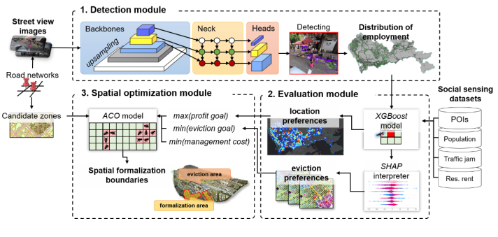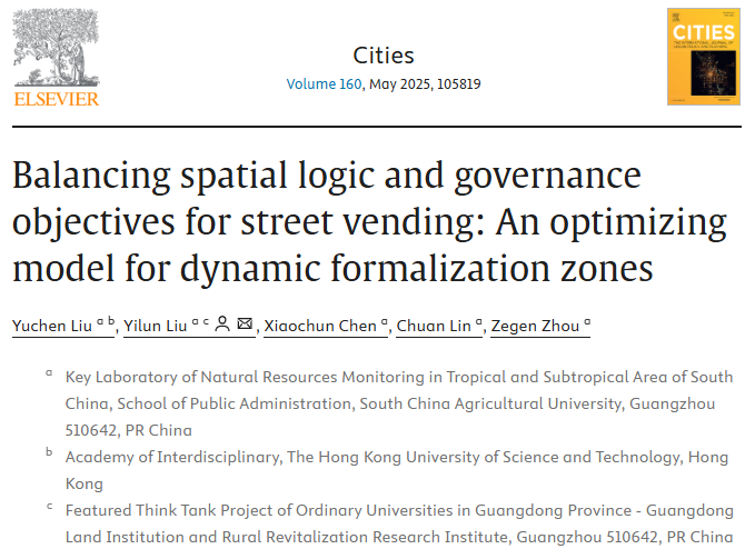 近日,公共管理学院刘轶伦副教授在城市非正规经济治理领域取得新进展,其研究成果Balancing spatial logic and governance objectives for street vending: An optimizing model for dynamic formalization zones近日发表于城市研究Top期刊Cities(中科院一区,影响因子6.0)。该研究首创深度学习+群智能优化算法动态治理模型,为破解全球城市普遍存在的摊贩治理难题提供了中国方案。