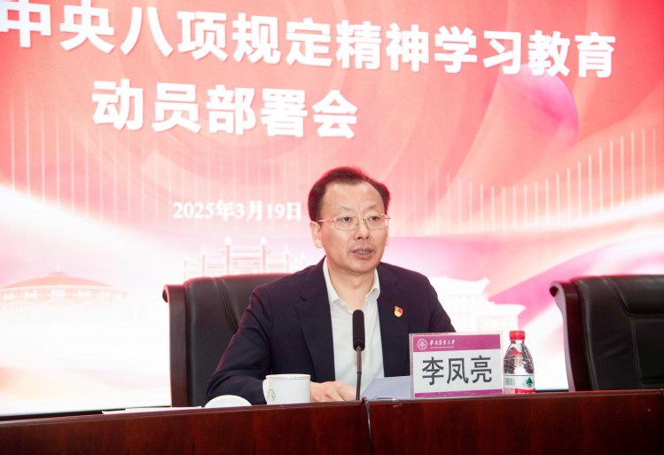 3月19日,学校党委召开会议,学习贯彻习近平总书记关于深入贯彻中央八项规定精神学习教育的重要讲话和重要指示精神,以及中央、省委有关部署要求,对全校开展深入贯彻中央八项规定精神学习教育进行安排部署。学校党建工作领导小组组长、校党委书记李凤亮出席会议并作工作部署,学校党建工作领导小组副组长、校党委副书记丁红星主持会议。