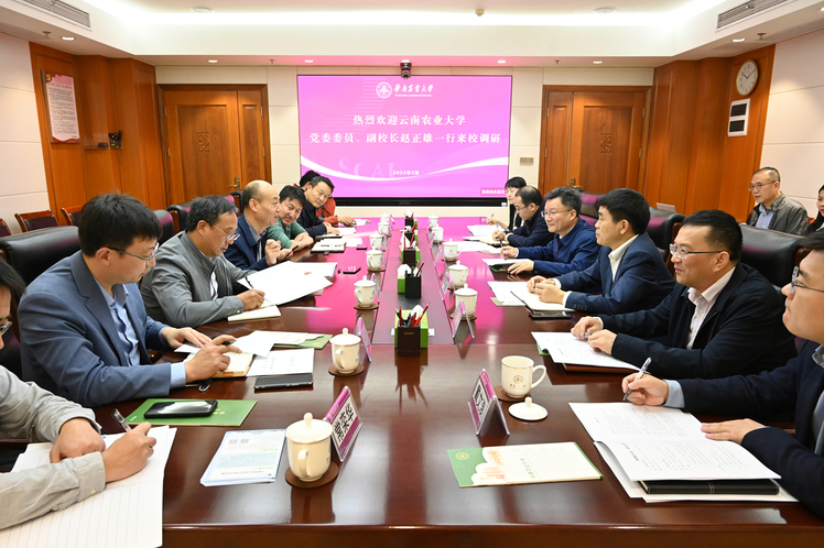3月21日,云南农业大学党委委员、副校长赵正雄带队来校调研交流,乐竞在线注册副校长温小波在行政楼7楼中会议室接待来宾并座谈。