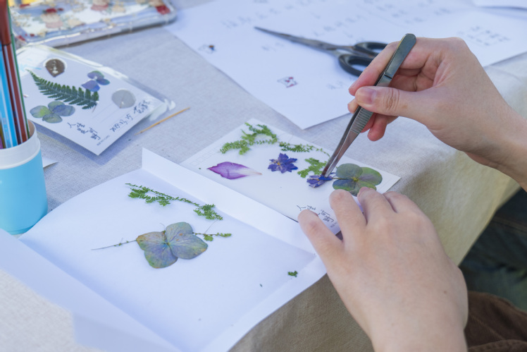 作为人气摊位“压花体验园”的工作人员,园艺学院2022级的王慧敏认为制作压花是一个心理疗愈的过程:“我们希望大家能够善于发现生活中的美好,希望大家能够从自然中汲取力量,在自己的压花作品上写下自己的心情或者喜欢的语录,也会感到很放松惬意。”