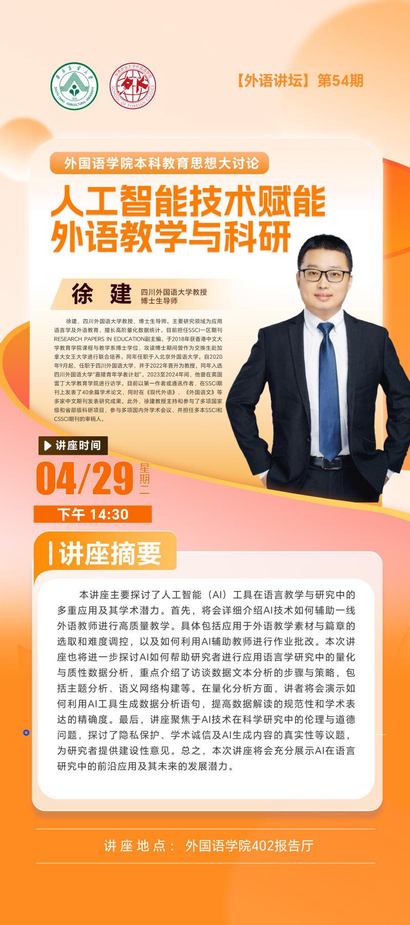 【外语讲坛】第54期:人工智能技术赋能外语教学与科研
