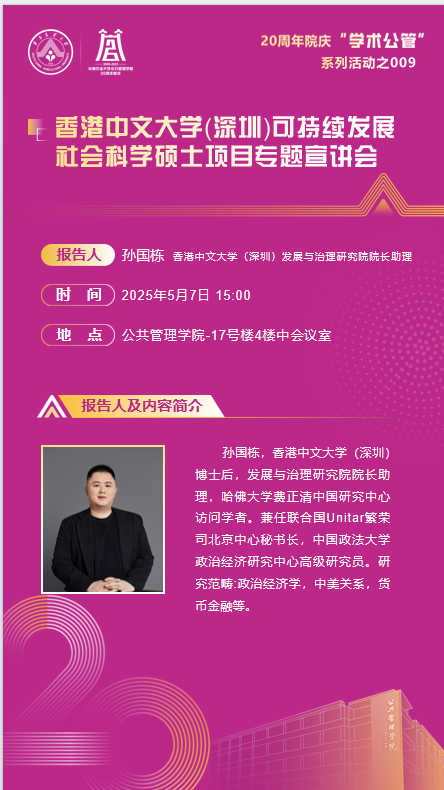 公共管理学院20周年院庆“学术公管”系列活动之009:香港中文大学(深圳)可持续发展社会科学硕士项目专题宣讲会
