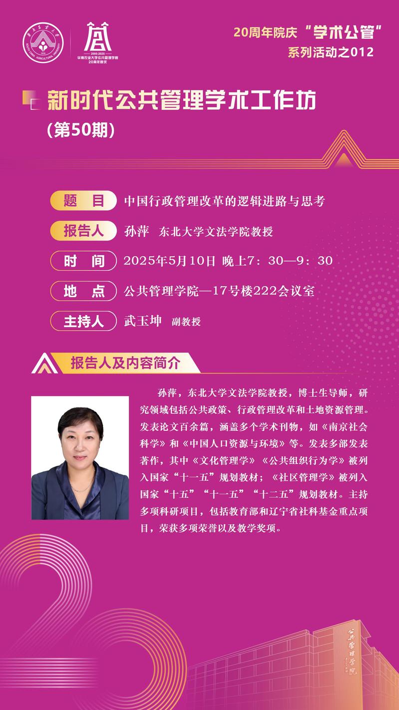 公共管理学院20周年院庆“学术公管”系列活动之012:新时代公共管理学术工作坊(第50期):中国行政管理改革的逻辑进路与思考