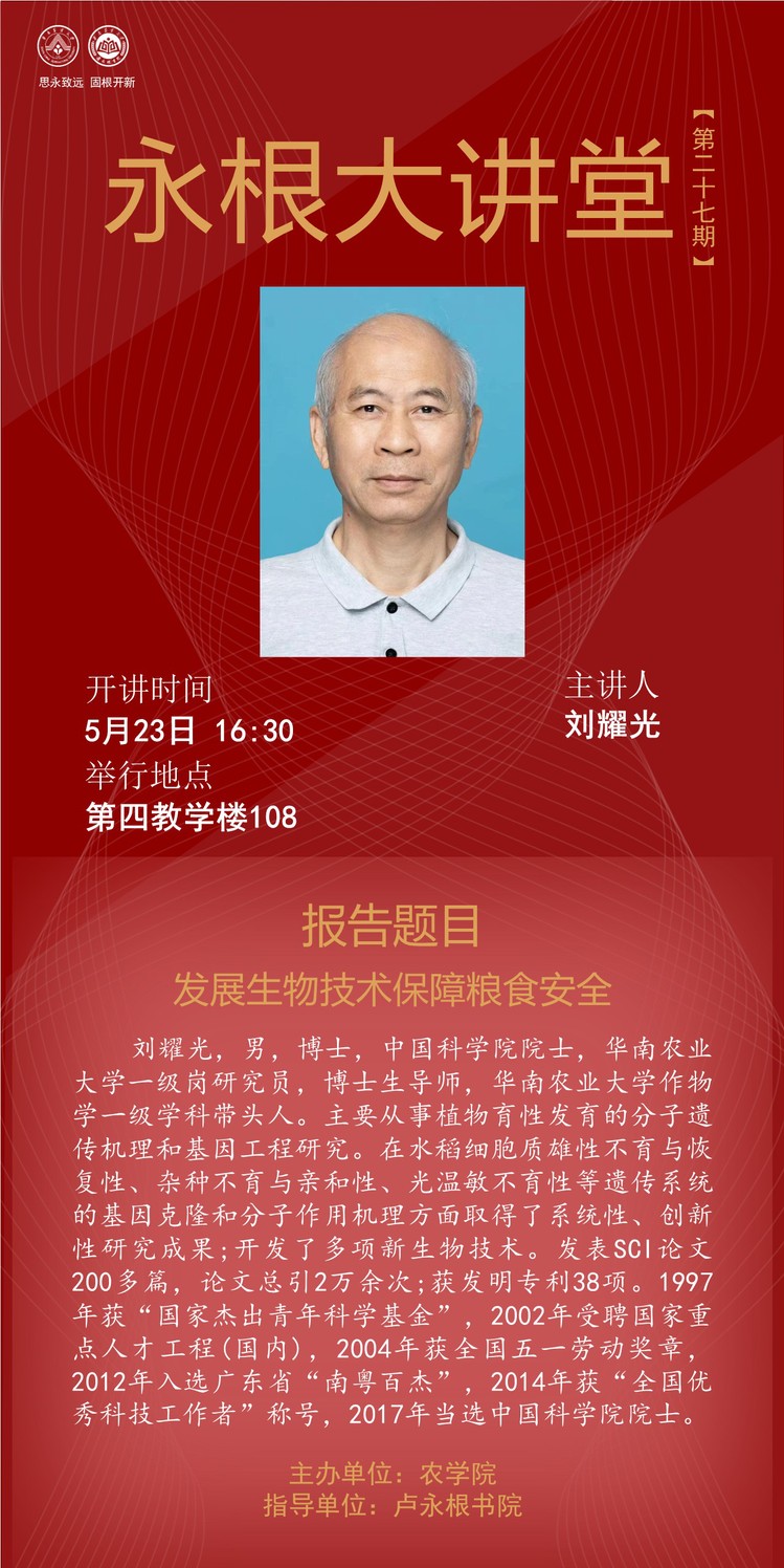 永根大讲堂第二十七期--发展生物技术 保障粮食安全