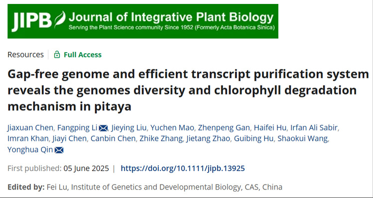 近日,乐竞在线注册园艺学院胡桂兵教授和秦永华教授团队在国际知名学术刊物Journal of Integrative Plant Biology(影响因子:9.3,中科院一区,Top期刊)上发表了题为“Gap-free genome and efficient transcript purification system reveals the genomes diversity and chlorophyll degradation mechanism in pitaya”的研究论文。该研究发布了火龙果首个端粒到端粒(T2T)级别的基因组和火龙果病毒污染的转录本纯化系统,揭示了叶绿素降解通路在不同果皮颜色火龙果中调控差异的分子机制。