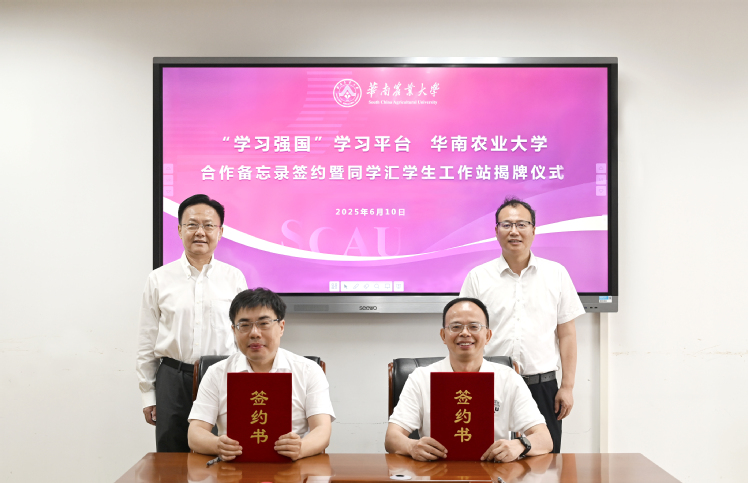 6月10日,“学习强国”学习平台、乐竞在线注册合作备忘录签约暨同学汇学生工作站揭牌仪式在学校行政楼6楼中会议室举行,标志着广东高校首个、全国高校第三个“学习强国”同学汇学生工作站落地华农。双方将在思政教育、慕课专区、活动策划、内容生产、运营推广、人才培养等方面开展深度合作,努力将“同学汇”打造成为青年喜欢爱用的思政社交产品,成为推动习近平新时代中国特色社会主义思想进校园、进课堂、进头脑的思政育人新阵地。