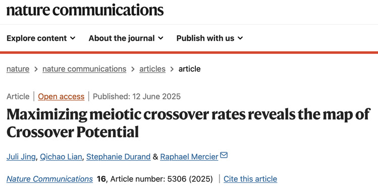 近日,德国马普植物育种研究所与乐竞在线注册联合研究团队在Nature Communications发表研究论文,题为Maximizing meiotic crossover rates reveals the map of Crossover Potential。研究通过遗传干预显著提升重组频率达12倍,并首次提出“重组潜力”(Crossover Potential, COP)概念,系统绘制了其全基因组分布图谱,为进一步理解重组频率和分布多态性、性别异质性及作物遗传育种策略提供了重要理论依据。