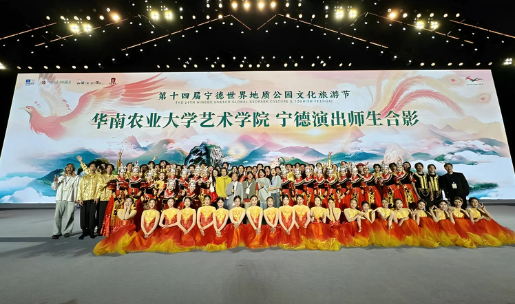 演出以“宇宙视角”穿越宁德山海,用光影科技讲述地球故事,用艺术语言诠释“全家福安”的温情。华农学子精彩出演了茶舞《上茶迎客》、杂技《百家宴》、情景表演《畲族婚礼》、歌曲《家是福安》等节目,每一个舞蹈动作都凝聚着汗水与坚持,向观众展现了舞蹈的魅力与地质文化的独特韵味。