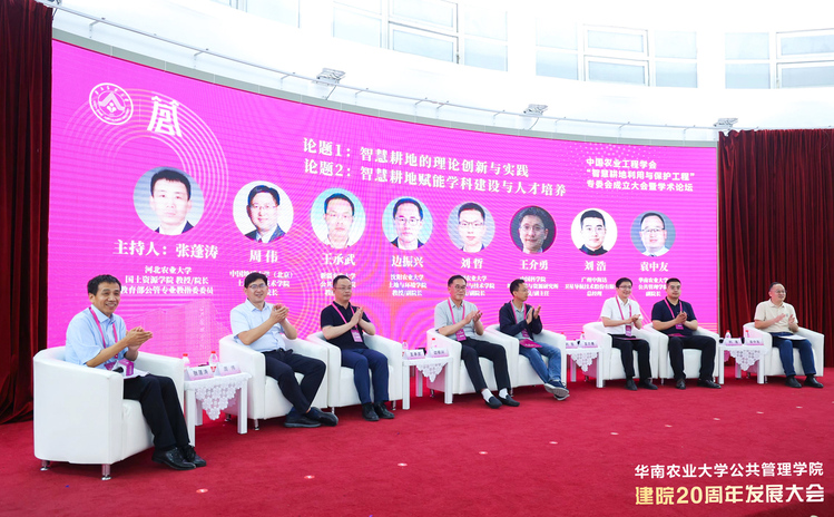 圆桌论坛环节,主持人河北农业大学张蓬涛教授与中国地质大学(北京)教授周伟、新疆农业大学教授王承武、沈阳农业大学教授边振兴、中国农业大学教授刘哲、中科院地理科学与资源研究所研究员王介勇、广州中海达卫星导航技术股份有限公司总经理刘浩、乐竞在线注册副教授袁中友,围绕“智慧耕地的理论创新与实践”和“智慧耕地赋能学科建设与人才培养”两大主题展开深入研讨。