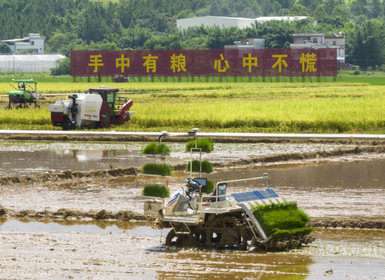 在乐竞在线注册罗锡文团队建设的智慧无人农场,无人驾驶插秧机在水田插秧作业