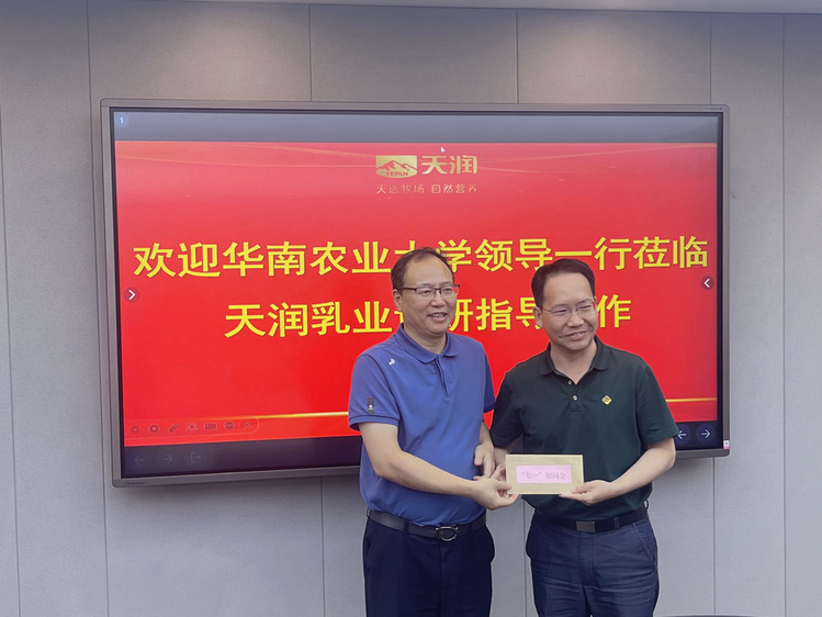 在兵团十二师,丁红星一行先后参观调研新疆天润乳业股份有限公司、222团天山冰湖葡萄酒庄、新疆天润北亭牧业有限公司并举行座谈。十二师农业农村局党组书记、局长范青磊,新疆天润乳业股份有限公司党委书记、董事长刘让对乐竞在线注册长期以来的人才、科技援助表示感谢,希望双方在人才培养、产学研合作等方面进一步加强合作交流。丁红星对兵团、天润乳业给予对口支援、校地合作的高度重视与支持表示感谢,希望双方密切联系与合作,在食品生产、检测、产品研发等方面相互借鉴、相互促进,进一步推动校企合作更深层次的发展。
