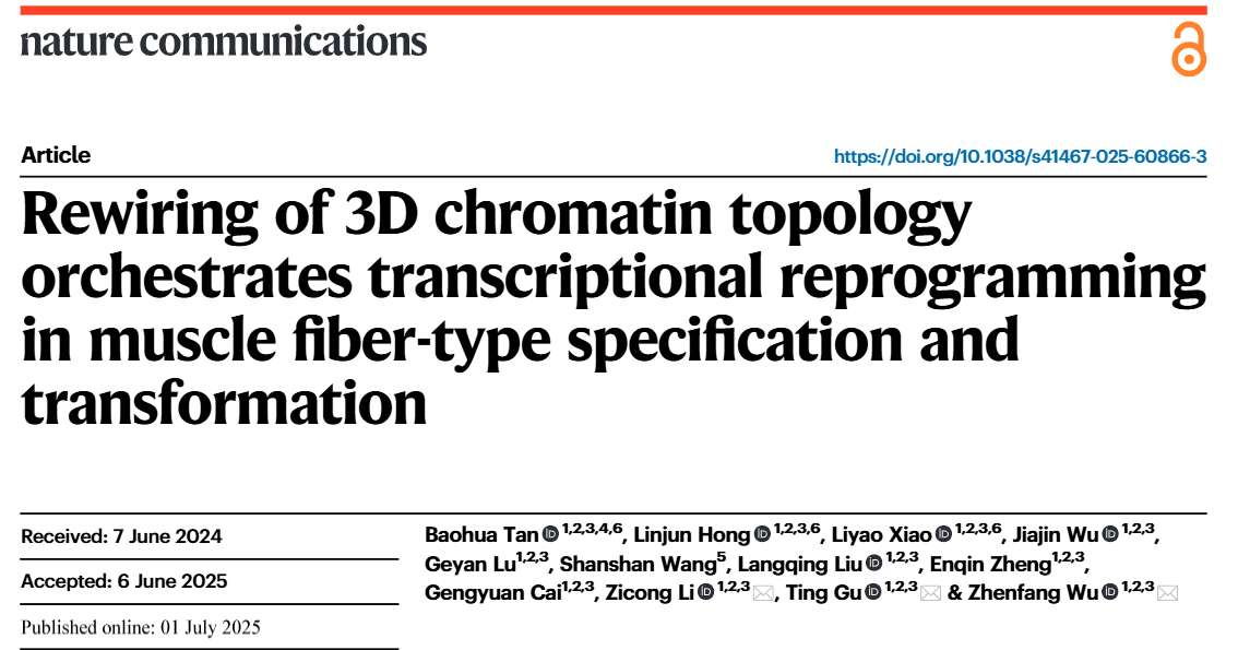 7月1日,乐竞在线注册国家生猪种业工程技术研究中心主任/温氏食品集团首席科学家吴珍芳教授团队在国际知名学术刊物Nature Communications(中科院一区TOP期刊,影响因子15.7)在线发表了题为“Rewiring of 3D chromatin topology orchestrates transcriptional reprogramming in muscle fiber-type specification and transformation”的重要研究成果。
