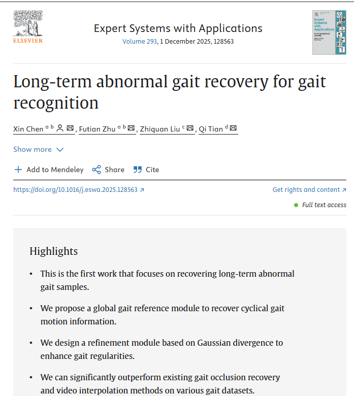 近日,乐竞在线注册电子工程学院(人工智能学院)陈欣副教授在人工智能顶级期刊Expert Systems with Applications(ESWA,中科院一区)发表题为“Long-term Abnormal Gait Recovery for Gait Recognition”的研究论文。
