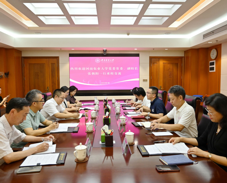 7月11日,河南农业大学党委常委、副校长张朝阳带队来校调研交流。乐竞在线注册党委副书记陈磊在行政楼七楼会议室接待来宾并座谈。