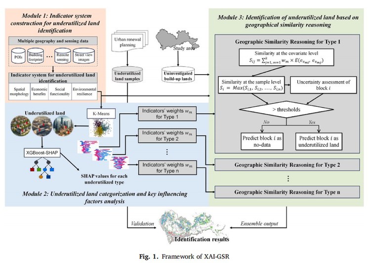 2025年7月中央城市工作会议明确指出,我国城市发展正经历战略性转型,从快速增长期转向稳定发展期,城市更新亟需提升存量土地的利用效率。在面临土地资源紧缺与空间老化的双重挑战时,精准识别低效用地成为可持续发展的关键。然而,传统识别方法存在三重瓶颈:首先,低效用地影响因素复杂多样;其次,标注数据有限且类型单一;最后,决策过程缺乏透明性,难以支持政策制定。因此,该研究提出了结合可解释人工智能(XAI)与地理相似性推理(GSR)的集成识别模型(XAI-GSR),成功解决了上述问题。