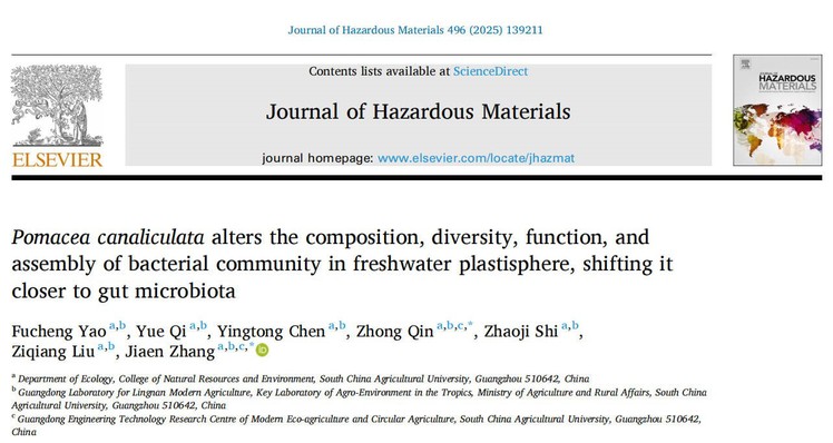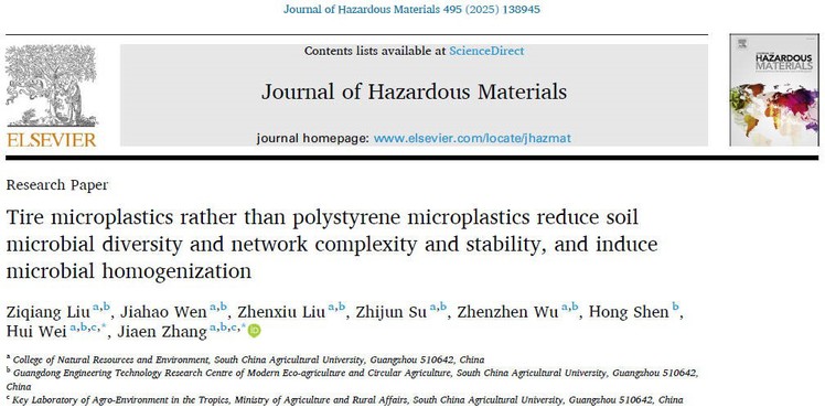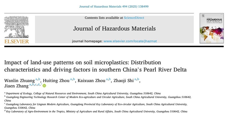 近日,乐竞在线注册资源环境学院、广东省现代生态农业与循环农业工程技术研究中心、农业农村部华南热带农业环境重点实验室、岭南现代农业科学与技术广东省实验室章家恩教授团队围绕珠江三角洲地区土壤微塑料的空间分布特征,以及微塑料在农田生态系统和水生生态系统的迁移转化、赋存、生态效应及其生态风险等领域开展研究,取得系列新进展。2025年5月以来,团队连续在环境科学与生态学领域著名期刊Journal of Hazardous Materials(中科院一区TOP,五年影响因子12.4)发表4篇学术论文。
