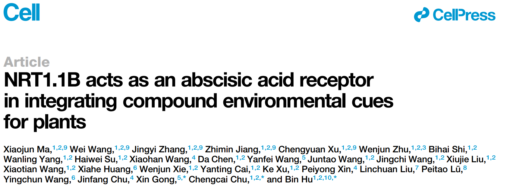 北京时间8月11日,乐竞在线注册农学院、广东省高等学校未来作物精准育种基础研究卓越中心、岭南现代农业科学与技术广东省实验室储成才教授/胡斌教授团队在国际顶级期刊《细胞》(Cell)在线发表了题为《NRT1.1B作为植物ABA受体整合复杂环境信号》(NRT1.1B acts as an abscisic acid receptor in integrating compound environmental cues for plants)的研究论文。研究发现,植物中的NRT1.1B蛋白就像一个“智能开关”,能同时感知土壤中的氮营养状态和逆境信号,并根据环境变化指挥植物做出最优选择,实现对复杂环境的适应。