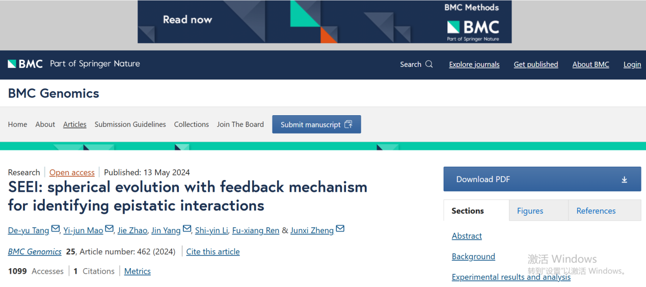 团队在《BMC Genomics》发表题为“SEEI:spherical evolution with feedback mechanism for identifying epistatic interactions”的研究(唐德玉教授为第一作者,毛宜军博士为共同通讯作者)。团队提出了一种线性混合统计上位性模型(LMSE)和一种具有反馈机制的球形演化方法(SEEI),在现有测算算法中表现更为优异。同时,团队在实际数据中发现了新的单核苷酸多态性(SNP)–单核苷酸多态性(SNP)相互作用组合,为全基因组关联研究提供了新的思路。