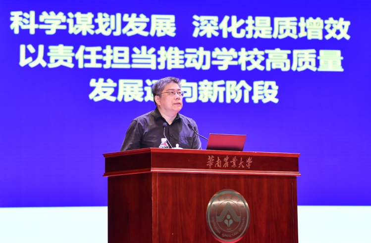 立足当前关键节点,如何科学谋划发展,深化提质增效,为下一阶段工作奠定坚实基础?薛红卫指出,必须认清形势机遇,着重思考和答好强国建设的时代命题、湾区发展的地方考卷、创新跨越的校本课题;坚持问题导向,着力破解在发展思路、发展成效和发展机制上的问题不足;深化提质增效,提升创新人才供给、农业科技创新、服务经济发展和全球治理的贡献率。
