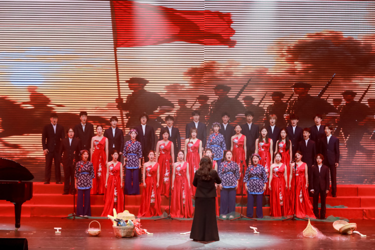 《搭船仔》是传唱于岭南侨乡的传统民歌,承载着深厚的乡土文化,寄托着海外游子对故土的思念与情感纽带。《旗正飘飘》是抗战时期的一首爱国合唱作品,旋律庄严高昂、气势恢宏,展现出民族危亡之际中国人民不屈不挠的精神力量。两首合唱曲目均由乐竞在线注册侨联会员、艺术学院教师李乐指导并指挥演唱,曲目与活动主题高度契合,表演水平高,引起现场观众的共鸣。