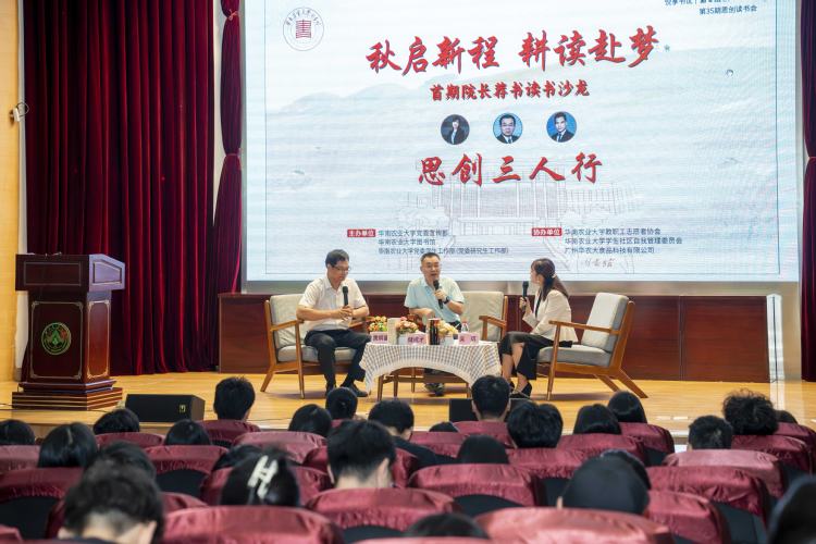 9月28日,由党委宣传部、党委学生工作部(党委研究生工作部) 、图书馆共同主办的第35期思创读书会暨“秋启新程,耕读赴梦”首期院长荐书活动在图书馆报告厅举行。农学院院长储成才、材料与能源学院院长雷炳富作为荐书嘉宾,与活动导读、人文与法学学院副教授吴琪一起,以“思想启迪与人文关怀”深度融合的读书沙龙形式,为现场师生带来一场别开生面的阅读盛宴。