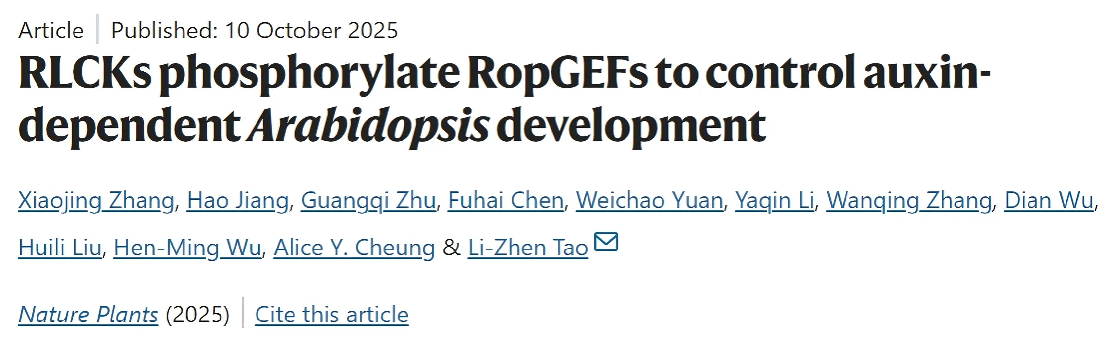 综上所述,该研究鉴定了RAK-RopGEF 这一关键功能模块,揭示了蛋白磷酸化在生长素活化ROP的细胞表面信号通路中重要性,阐明了RAKs通过磷酸化精确调控RopGEF1的活性、亚细胞定位和蛋白稳定性,进而激活ROP的分子机制,为理解生长素如何精细调控细胞极性和植物的器官发生提供了重要理论依据。