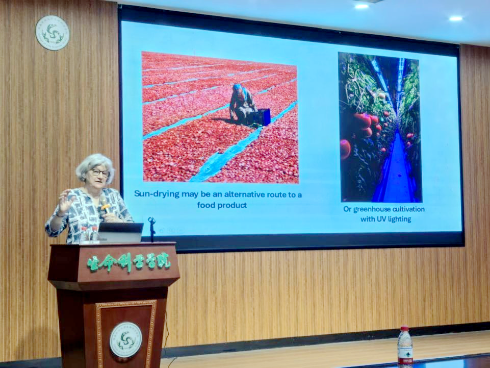 Cathie Martin作了题为“Healthy plants; healthy people - fortifying vitamins and phytonutrients in tomato”的学术报告,并介绍了JIC的概况与发展历程。本次活动吸引了近120名师生到场参加,师生们进行了深入讨论和互动,共同探索植物营养强化如何为人类健康助力,现场交流氛围热烈。