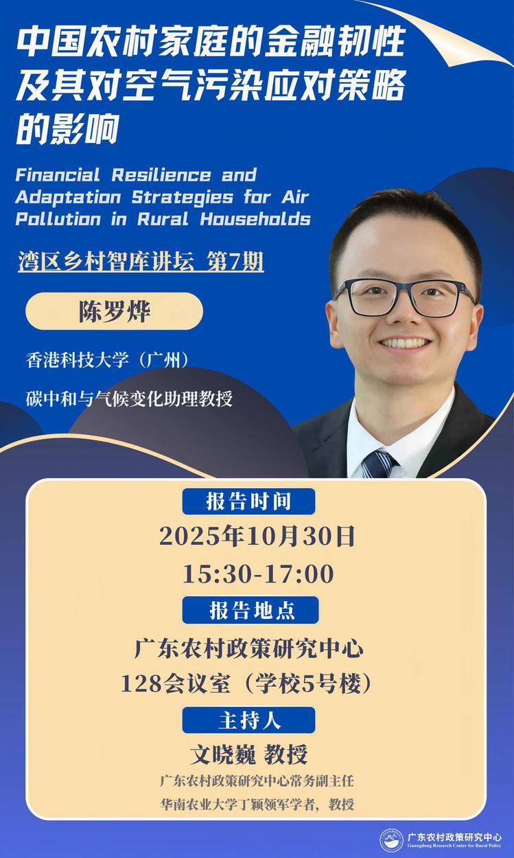 湾区乡村智库讲坛(第七期):中国农村家庭的金融韧性及其对空气污染应对策略的影响