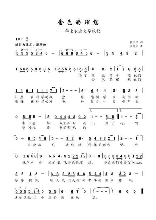 应用范围:配色校歌为张岳恒作词、岳晓云作曲的《金色的理想》。