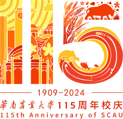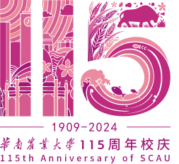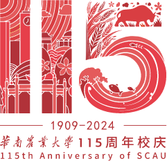 校徽为圆形,以绿色为标准色,分为内外两圈,外圈由中、英文校名组成,内圈由字母“A”、数字“1909”和图案造型组成。“A”代表Agricultural,以五条曲线组成,象征着学校人才培养、科学研究、社会服务、文化传承创新和国际交流合作五大职能和坚持德、智、体、美、劳五育并举,并形成山峰形状,寓意着华农人争创一流、勇攀高峰的进取精神。“1909”代表学校办学起始于1909年。“A”下方的圆点和两片绿叶的抽象造型,寓意着学校以立德树人为根本,以强农兴农为己任,托举希望,人才辈出。图示: